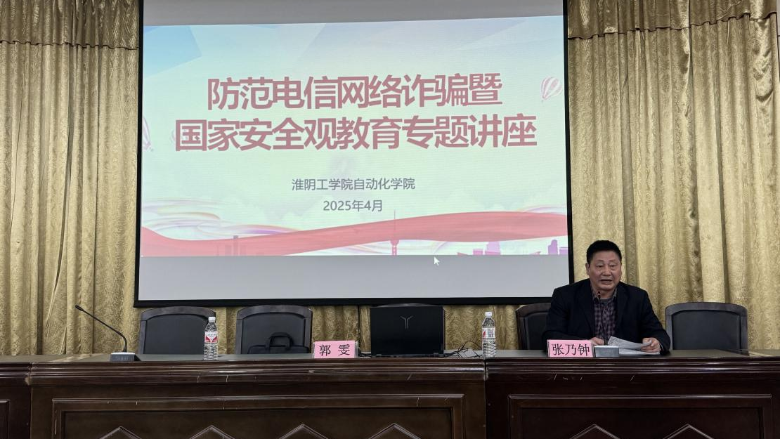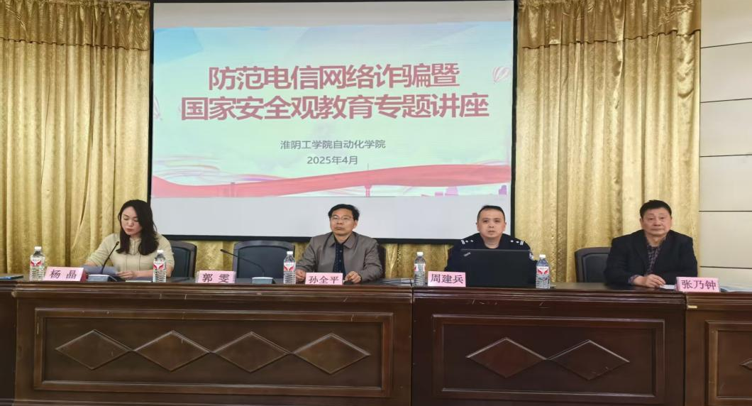 为助力师生深入洞悉电信网络诈骗手段,掌握防骗技巧以规避财产损失,同时深刻领会国家安全观内涵,规范日常行为。4月9日下午,自动化学院在图书馆报告厅举办了“防范电信网络诈骗暨国家安全观教育”专题讲座。本次讲座特邀枚乘路派出所所长周建兵、经开区公安分局政保大队教导员郭雯担任主讲,自动化学院党委书记孙全平,校关工委秘书长张乃钟,自动化学院全体辅导员出席活动,全体24级本科生和研究生参与本次学习,讲座由院党委副书记杨晶主持。