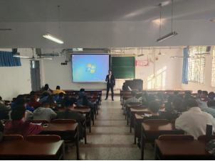 11月6日14:30,电信学院于YFJ0106开展优秀校友经验分享会。讲座由电信学院2017届校友代表,苏州微妙点文化公司总经理祖道荣主讲,2017级辅导员安亚虹及70名应届毕业生参加活动。
