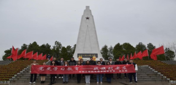 为强化党员党史学习教育的深度和广度,缅怀革命先烈,传承红色基因,电信学院党委组织校第二批党建工作样板支部、学生第一党支部于2021年3月31日下午两点前往新四军刘老庄连纪念园(淮阴八十二烈士陵园),开展“情景党课”第二课:战旗刘老庄。本次课程由支部书记吕艳主持,学院党委书记韩飞参加并作主题党课。