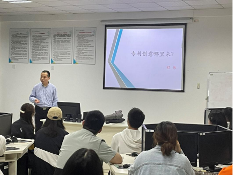 课堂上,程老师以什么是专利?什么是创新?逐个展开。和同学们详细讲述了创新教育,创新人才的特征,创新能力的实现途径等。程老师讲到,对于技术发明的思路与方法我们要善于总结,融会贯通,学会从多角度入手。
