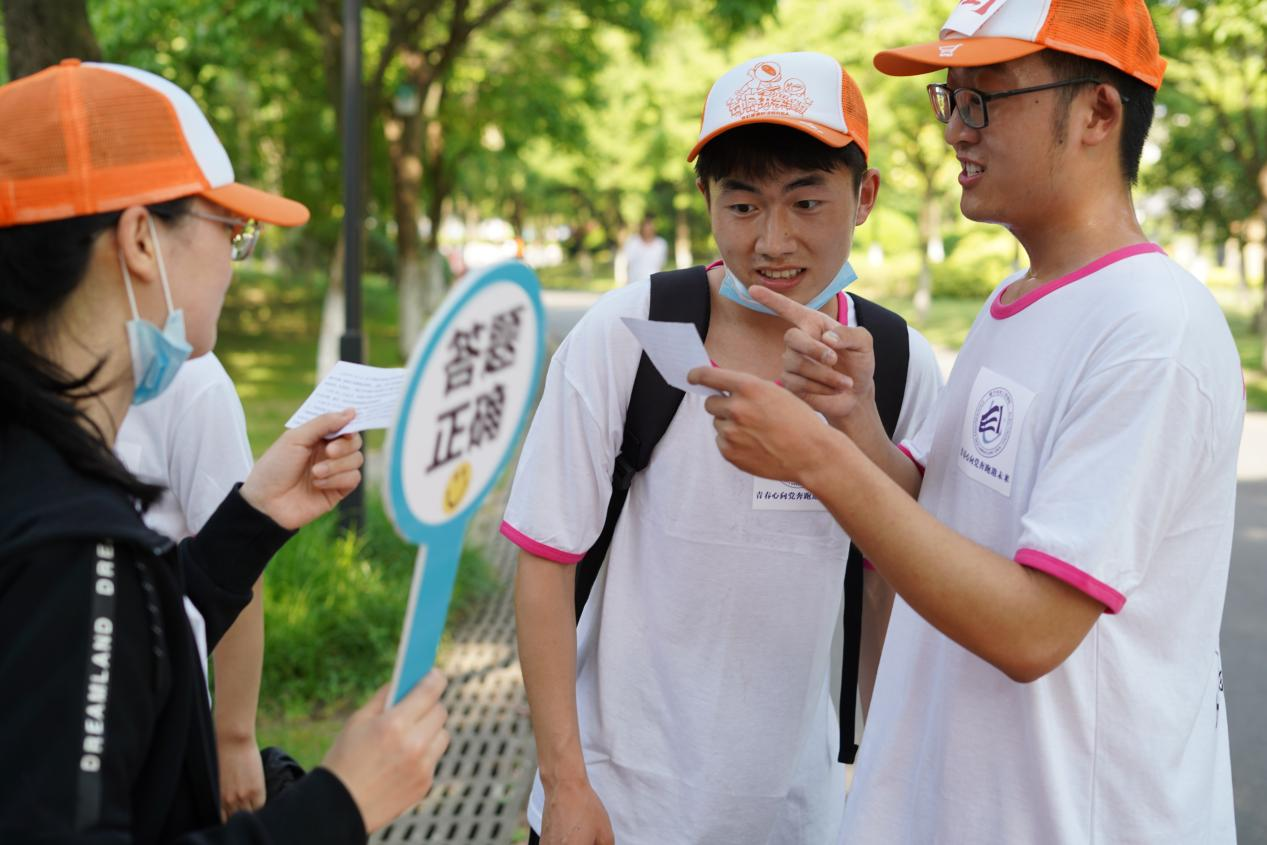 在2公里处,特别设置了党史知识竞赛答题环节,分别围绕党的历史、党的知识、党的理论和路线方针等主题进行,旨在通过党史竞赛答题与毕业季接力跑相结合,引导大学生牢记党史,爱党爱国,将自己的个人发展与祖国的建设有机结合,激励同学们传承百年红色基因,启跑青春新的征程。