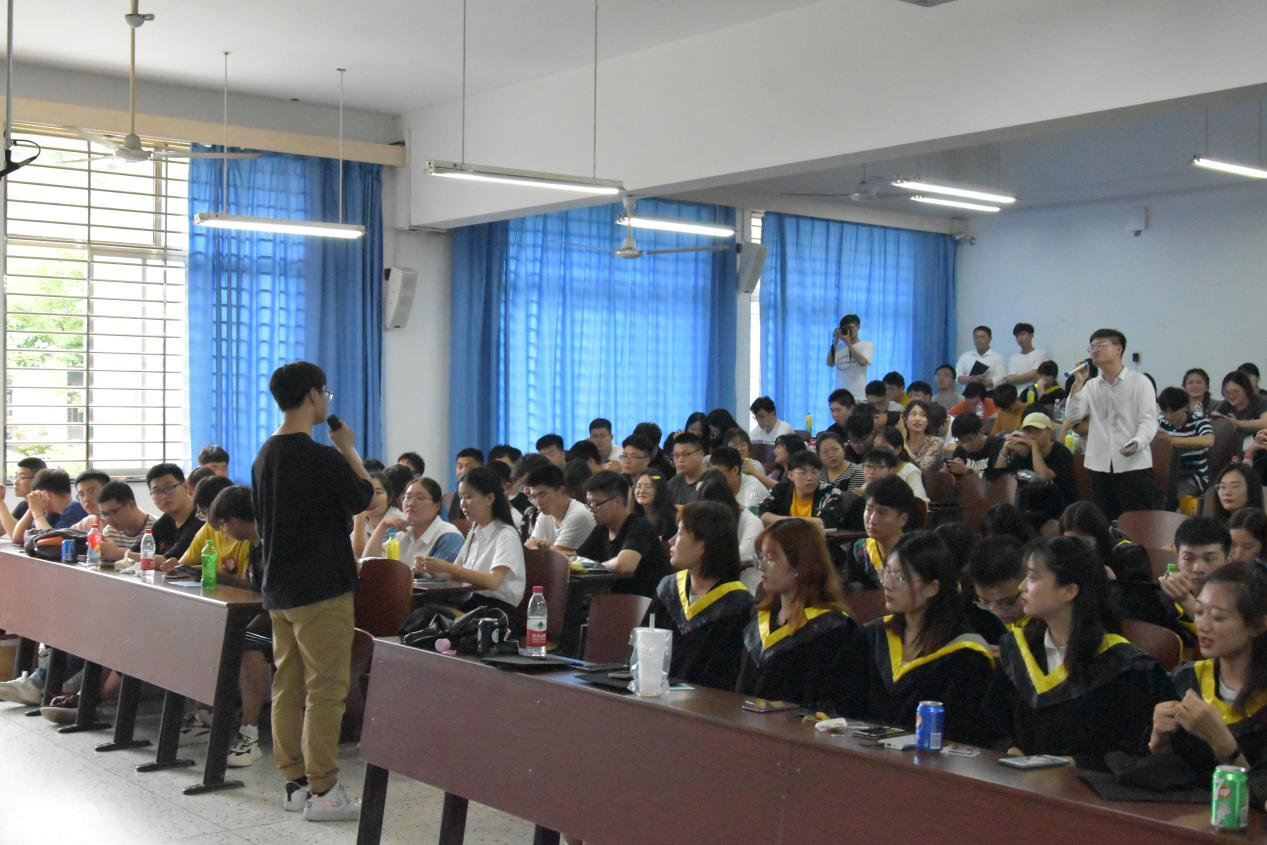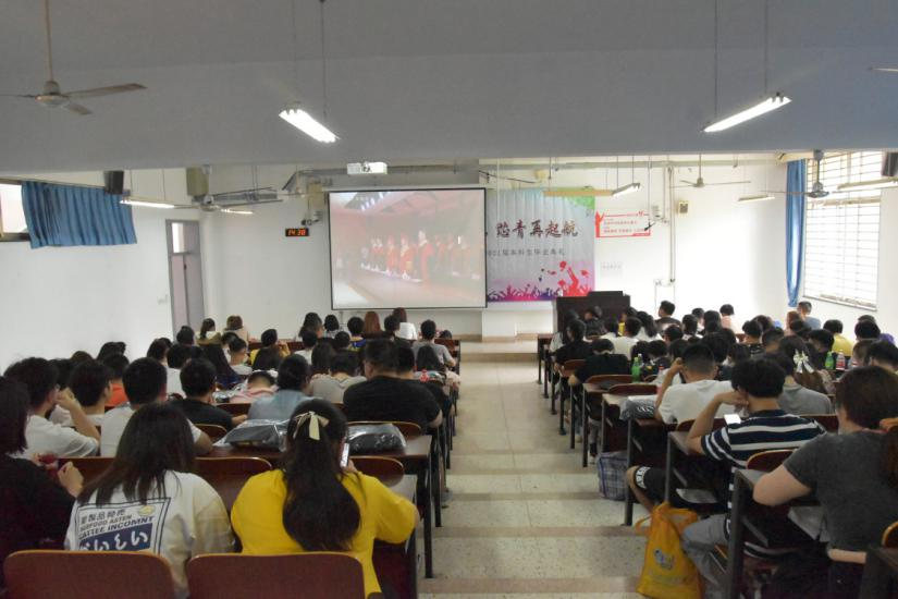 分会场典礼中,学弟学妹通过歌曲演唱和啦啦操表演等形式为毕业生践行。最后一次班会环节,各班班主任为毕业生送出提醒和祝福。学位授予仪式环节,学院党政领导、各系主任、学术委员会老师为毕业生举行拨穗仪式,颁发学位证书并合影留念。