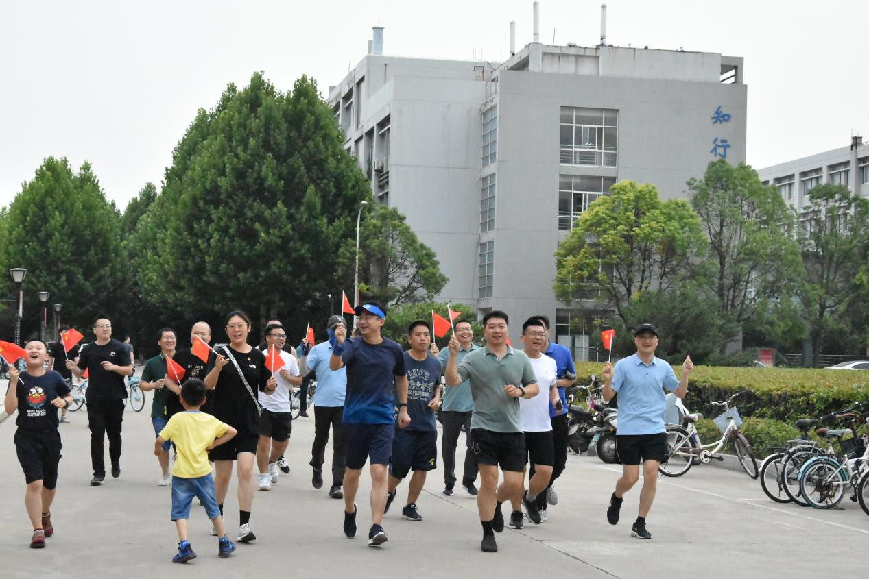 人间六月季,花开满淮工,当天下午,来自全院30余名教师党员意气风发,满载对党的祝愿、对学校的挚爱,他们从枚乘路校区北苑南门出发,沿着北苑操场、逸夫楼,北苑宿舍区、食堂,穿到南苑主干道、南苑宿舍区、图书馆广场等地,共计7.01公里,寓意“迎七一,颂党恩”,他们或跑步、或健走、或骑行,将运动的汗水撒在魅力淮工,所经轨迹恰巧合成“100”字样,寓意“庆祝建党100周年”,在五公里处,老师们积极参加党史答题活动,现场形成了以赛促学的积极氛围,在终点处,老师们与“庆祝建党100周年”幸福同框,感念中国共产党百年辉煌。