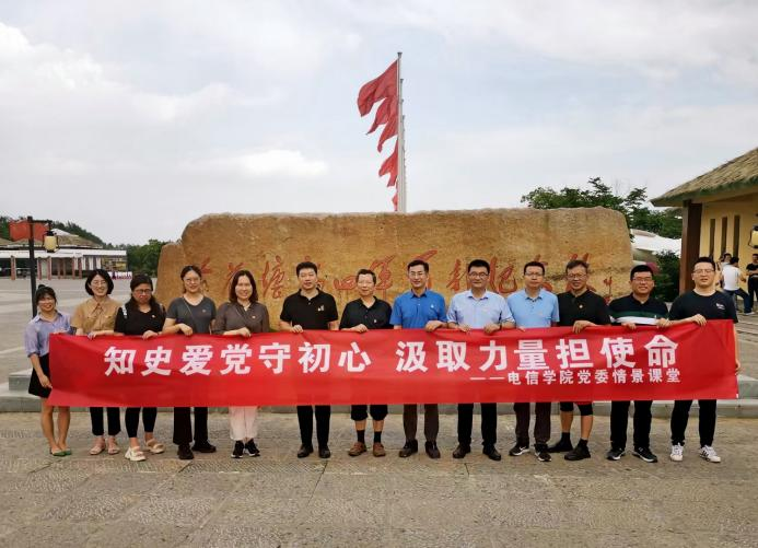 为庆祝建党100周年,深入学习习近平总书记在庆祝中国共产党成立100周年大会上的重要讲话精神,重温峥嵘岁月,扎实推进党史学习教育,2021年7月9日下午,电信学院党委赴黄花塘新四军军部纪念馆开展“情景党课”第5课暨“知史爱党守初心 汲取力量担使命”主题党日活动,校党史学习教育督导组第五组组长路红军、电信学院党委理论中心组成员参加本次活动。