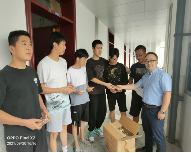 2021年9月20日下午,电信学院开展“情暖中秋 月饼暖‘芯’”返校学生宿舍慰问活动,学院党政班子、学工办全体辅导员分批前往学生宿舍,为学生送上中秋祝福。