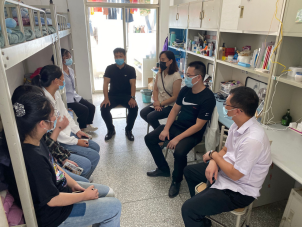 百年风华波澜壮阔,七十二载风雨兼程。金秋十月,红旗迎风飘展,为深入推进党史学习教育“我为师生办实事”实践活动,帮助新生尽快融入大学生活,学党史,办实事,2021年10月2日下午,电信学院党委书记韩飞、副书记王海云带领辅导员们深入男女生宿舍走访看望新同学,开展“青春心向党,大学再出发”活动。
