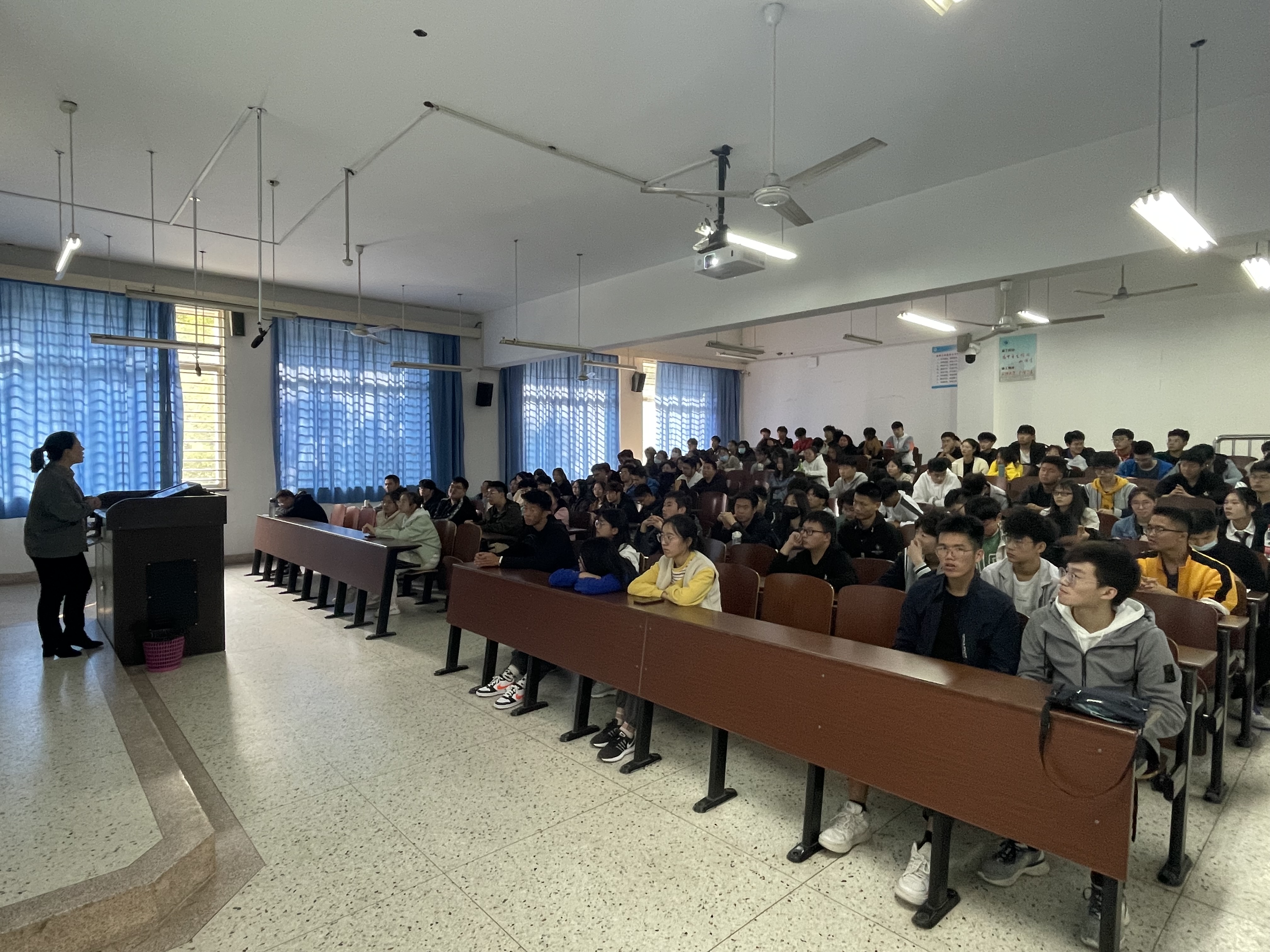 2021年10月26日12:50,电信学院于YFJ0108开展第十三期青马工程培训第一课:素养公开课—致敬“抗美援朝精神”。主讲人为电信学院学生第二党支部书记赵莉,学院全体青马学员及入团积极分子参加培训。