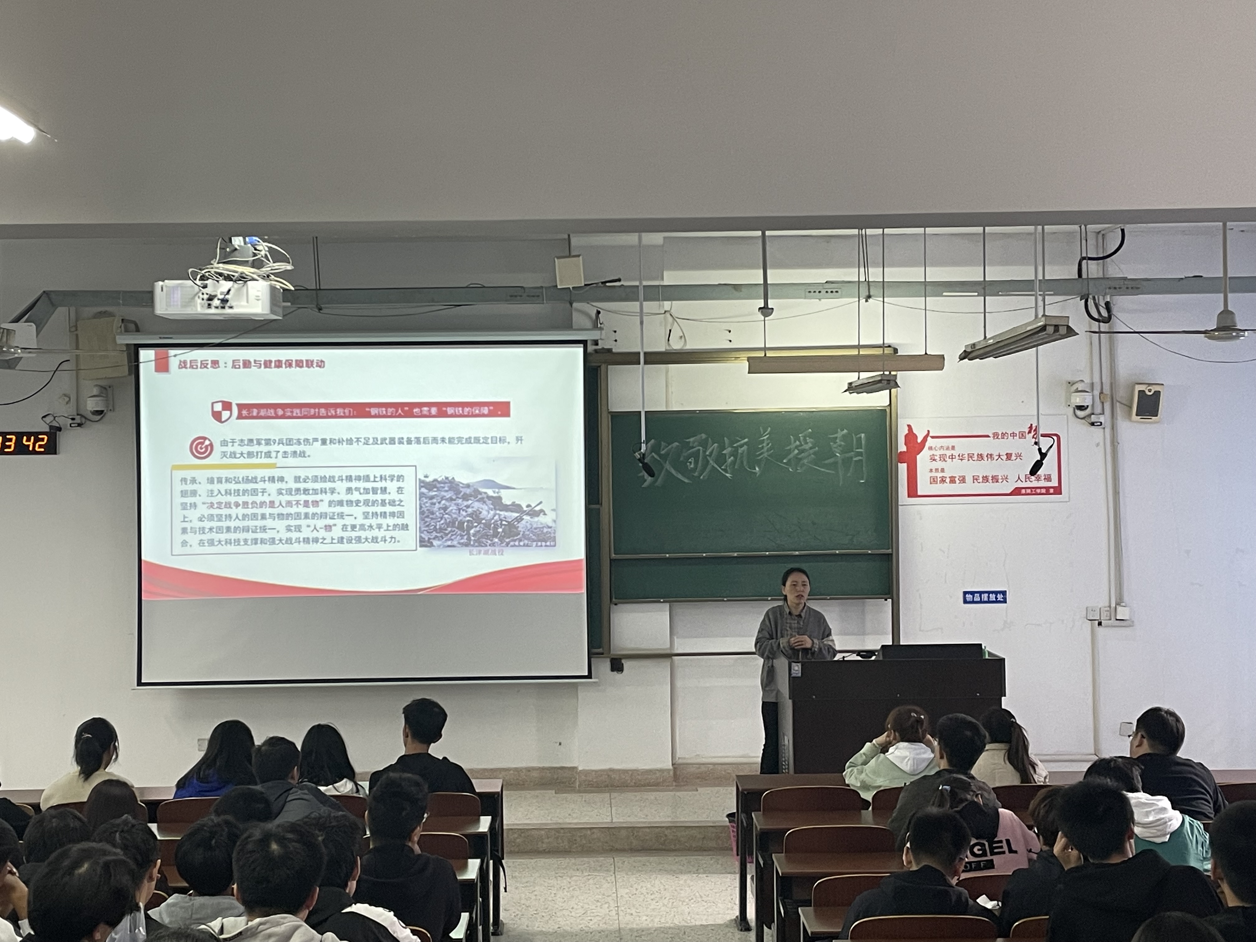 本次培训,采用分享和讲座相结合的方式,同学们在课程开始前就分组开展专题学习,激发学生的自我学习意识,再通过老师的重点讲述,让同学们关注抗美援朝战役的背景、对国家的积极作用,引导学生们从国际视野看待本场战役,也启发学生继承前辈遗志,将个人发展融入党和祖国事业中,昂首前行。