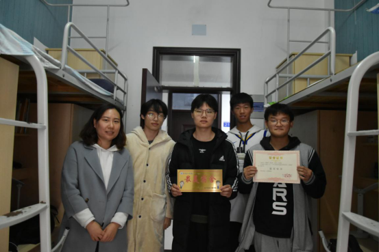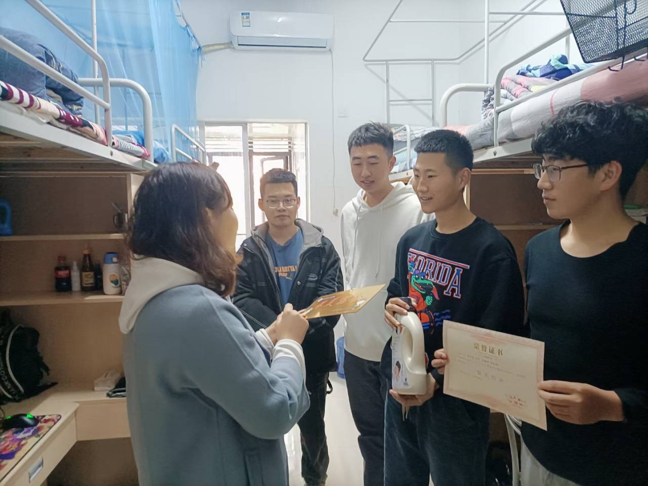 文明宿舍挂牌过程中,王海云副书记对获奖宿舍予以了表彰,并勉励同学们自觉培育“五好”习惯,继续保持宿舍良好卫生,营造良好的舍风。随后,王海云老师和文明宿舍同学们合影留念。