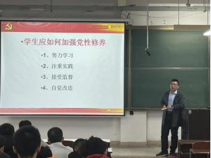 于博士从党性和党性修养概念的由来、党性和党性修养的科学内涵、加强党性修养的途径等多个方面展开介绍,指出党性修养是指共产党员按照党性原则所进行的自我教育、自我改造和自我完善,强调从实施人才强国战略的高度认识加强党性修养、发挥学生党员先锋模范作用的重要性,鼓励同学们在学习工作中锻造坚如磐石、韧如蒲苇的坚毅品格,以奋发有为的昂扬姿态践行共产党员的初心和使命。