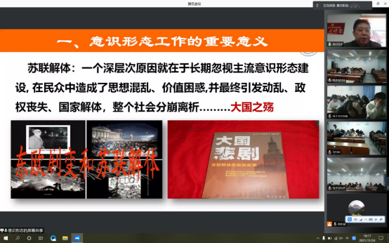 互联网技术迅猛发展的今天,网络已经成为大学生获得资讯的重要途径,各种讯息的飞速传播和社会舆论的无限拓展,使得多元化的意识形态和各种社会思潮涌入校园。为了提高大学生意识形态与网络安全的认识,提升参与的主观能动性。2021年11月24日电信学院邀请淮阴工学院苏北发展研究院(省级智库)副院薛建明教授做“意识形态与网络安全”专题报告。我院287名新生线上线下相结合的方式听取报告。