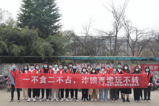 2021年12月11日星期六中午11点,电子信息工程学院芯青年志愿者团在枚乘路校区北苑校园信息宣传栏前进行预防诈骗的问卷调查和签名活动。