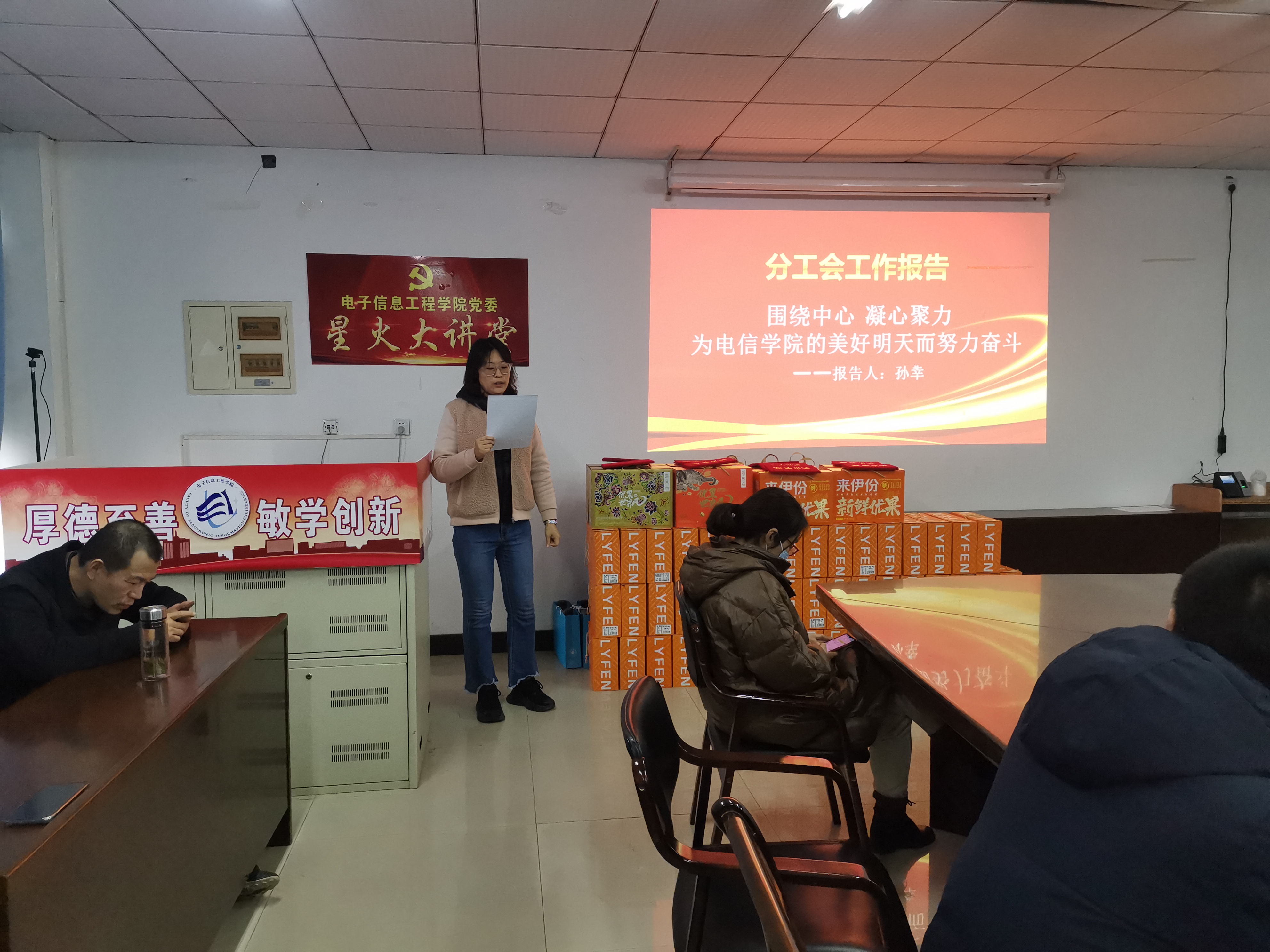 2021年12月22日上午10:00,电信学院二届三次教代会暨工会会员大会在逸夫楼1103会议室召开,学院全体教职工参加了会议。会议由学院党委书记韩飞主持。