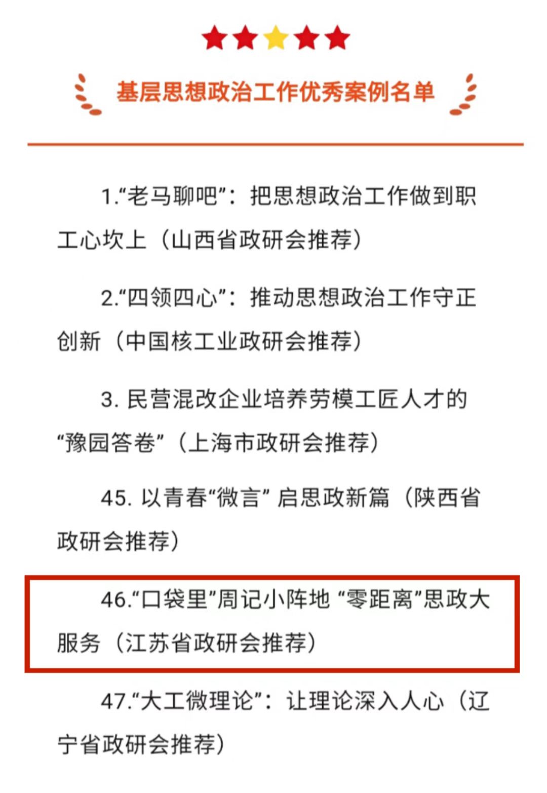 近日,经中国政研会基层思想政治工作优秀案例编审委员会评选,并报中央宣传部领导审定,在全国范围内评选出了60个基层思想政治工作优秀案例,由我校电信学院韩飞老师申报的工作案例《“口袋里”周记小阵地,“零距离”思政大服务》经江苏省政研会推荐,入选全国基层思想政治工作优秀案例。