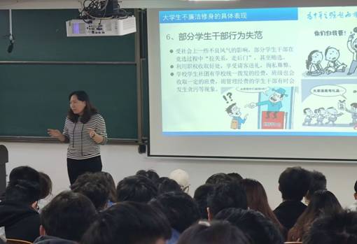 培训开始,王书记以“廉洁教育不只是领导干部需要做的事情”引出大学生廉洁教育的重要意义。随后她讲述了大学生初入社会便陷入贪腐“泥潭”之中的种种 “微腐败”案例,详细列举了七类大学生不廉洁修身的具体表现,指出了大学生日常不廉洁行为的危害性,增强了同学们在日常学习和生活中廉洁修身和防范腐败的主动性和自觉性。最后,王书记就学院接下来即将开展的廉洁文化月活动进行预告,鼓励同学们积极参加其中,共建廉洁校园、廉洁社会。