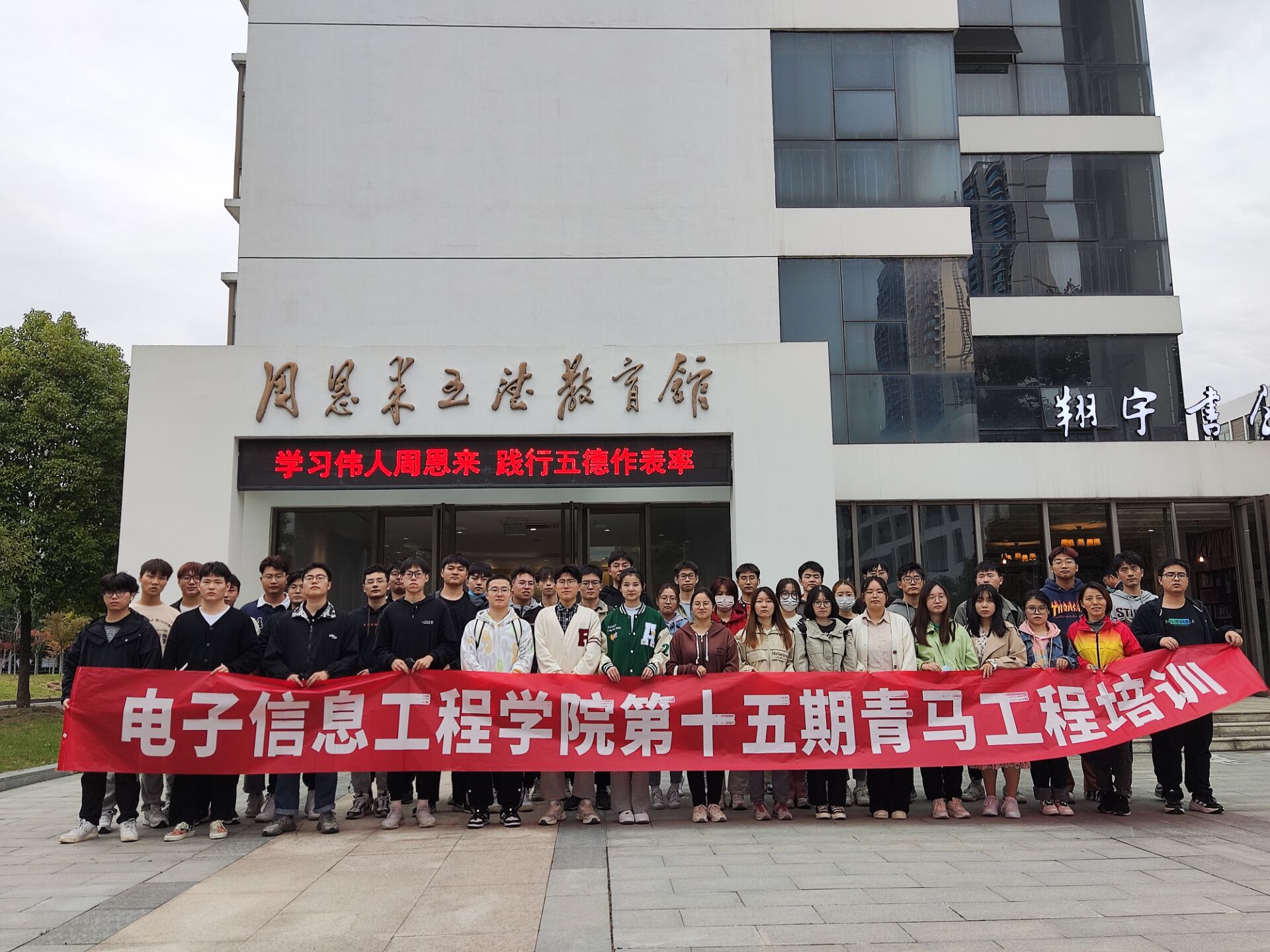 2022年10月26日,电信学院组织第十五期青马工程学员及入团积极分子代表分别前往周恩来纪念馆、周恩来故居、周恩来童年读书处、周恩来五德教育观进行参观调研。