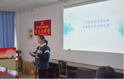 青年者,怀壮志,洒热血。电信学院于11月5日16:00,在YF1103举办《奋进新征程,青年勇担当》主题演讲比赛。
