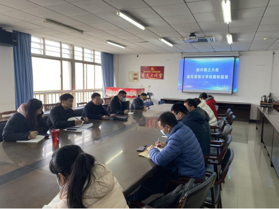 2022年12月12日上午10点,电信学院党委理论学习中心组在逸夫楼1103室进行2022年第12次集中学习,本次专题为创建高水平淮安大学,电信学院院长刘磊、综合办公室副主任孙幸作重点发言,校巡学旁听组织员曹诚、电信学院理论学习中心组全体成员参加学习会,电信学院党委书记韩飞主持本次学习会。