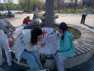 2023年4月2日,电信学院党委在枚乘路校区先鸣湖畔开展了“大手小手绘国风,红色种子撒童心”主题党日活动。电信学院学生第一、第二、第三党支部的辅导员老师王蓉蓉、安亚虹和学生党员代表、淮安小学学生和学生家长们参加了本次活动。