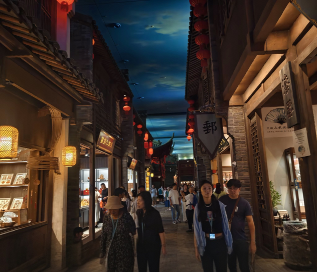在中国大运河博物馆内,实践团成员开启深度研学。在“大运河——中国的世界文化遗产”展厅,成员驻足清代《漕运全图》前,从密布的水网脉络中读懂运河如何串联南北经济命脉、巩固国家统一。在“运河上的舟楫”展厅,成员触摸宋代沙船防水隔舱设计模型,惊叹我国古人“水密隔舱”的智慧早于西方千年。在“大运河街肆印象”展厅,成员们穿行于老字号店铺中,听全息投影货郎吆喝“运河三鲜”,在沉浸式场景中感受“漕运通,百业兴”的历史盛况。