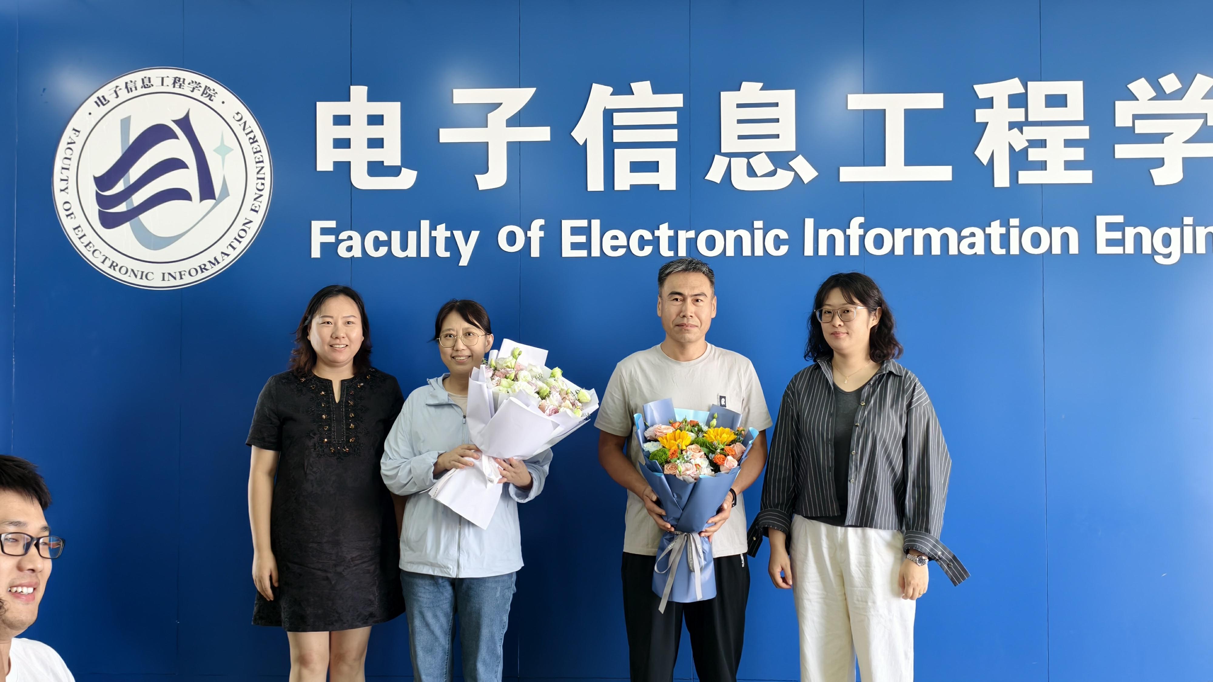 学院党委副书记王海云和工会主席孙幸为从教28至30周年的尹晓琦教授和戴峻峰教授献花,感谢他们长期投身教育事业的奉献与坚守。