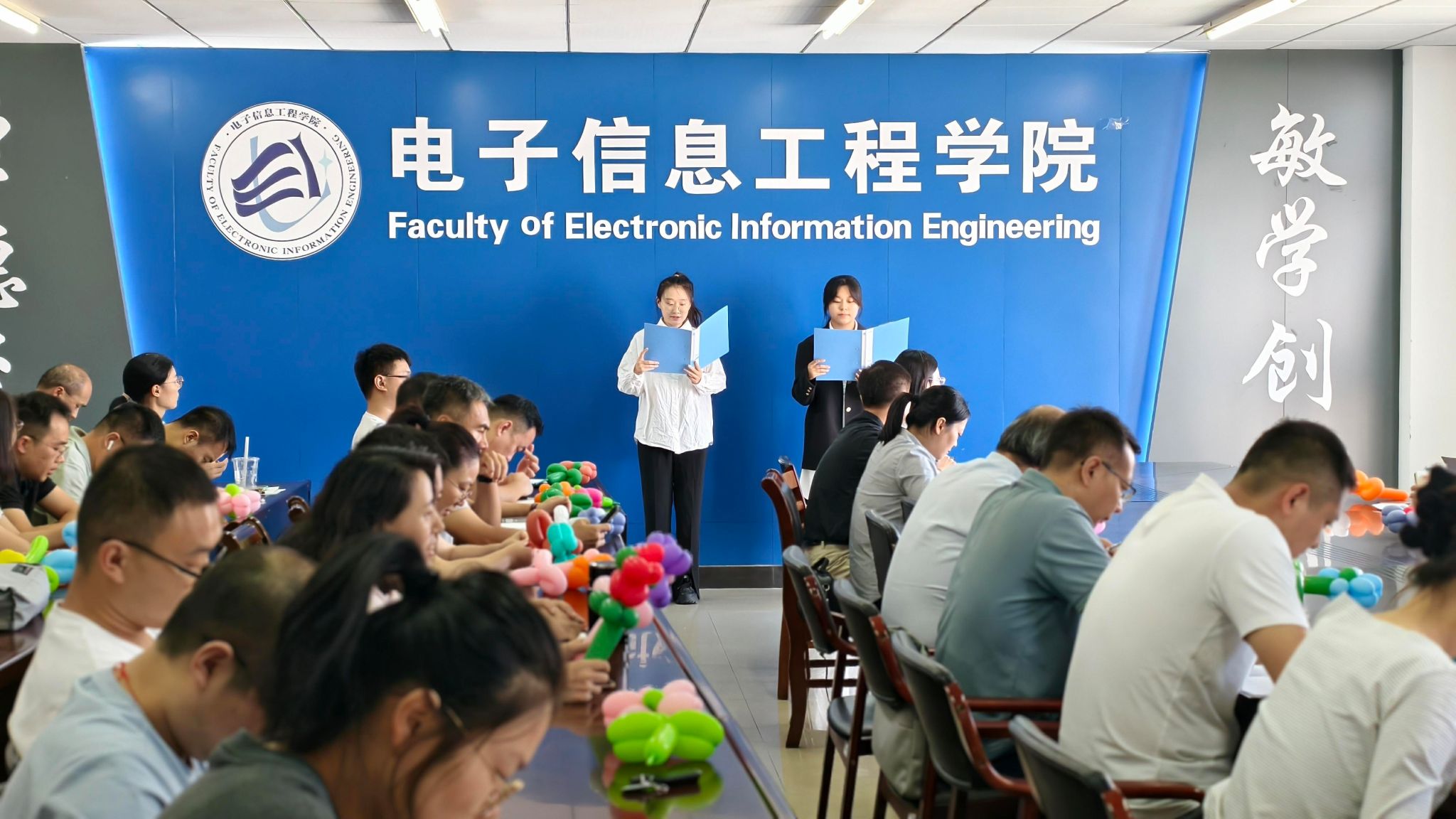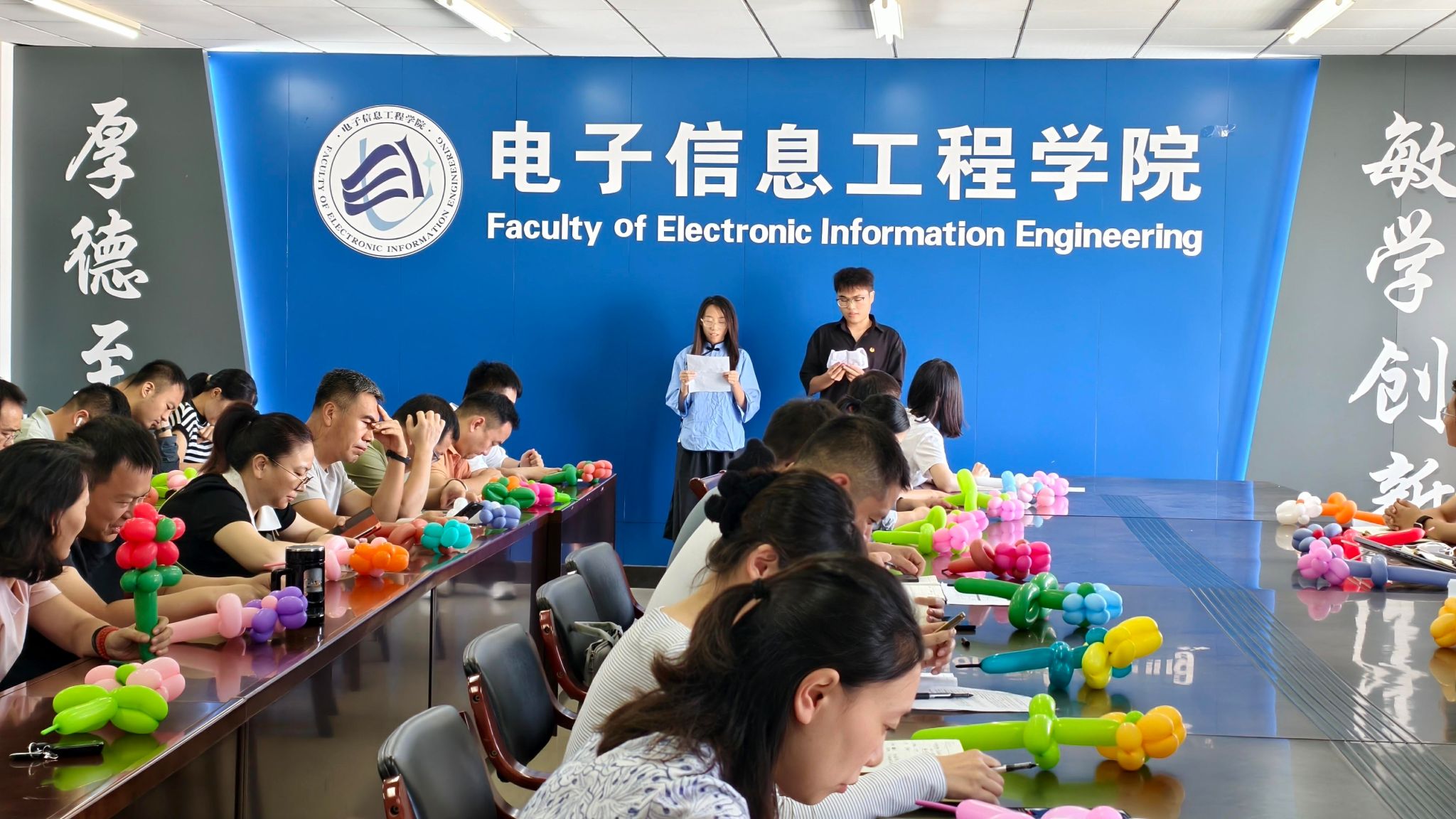 三尺讲台筑就星辰大海,一支粉笔写就浩瀚人生。2025年9月10日14时,淮阴工学院电子信息工程学院在枚乘路校区逸夫楼1103会议室举办“九月芬芳育出未来”——庆祝第41个教师节主题活动暨第2期青年教师成长工作坊。全体教师及校友、学生代表齐聚一堂,共庆佳节、共话成长,活动由学院党委书记韩飞主持。