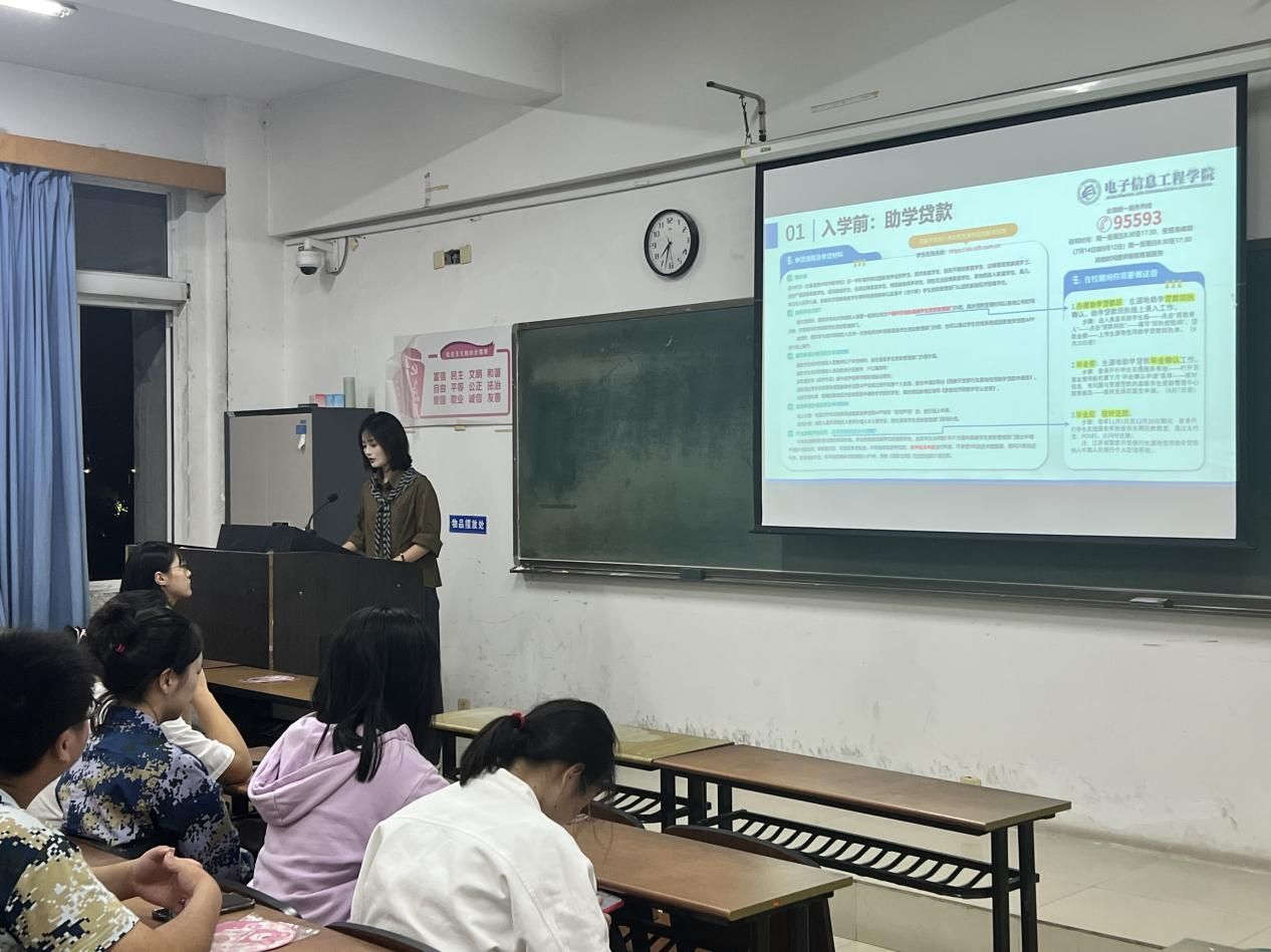 新学期伊始,淮阴工学院电子信息工程学院于2025年9月18日晚面向2025级新生举办助学政策宣讲会,助学部学生干部王兰红、周恒宇、潘嘉莹担任主讲,全面系统地介绍了国家及学院层面的各项资助政策,为新生安心求学保驾护航。