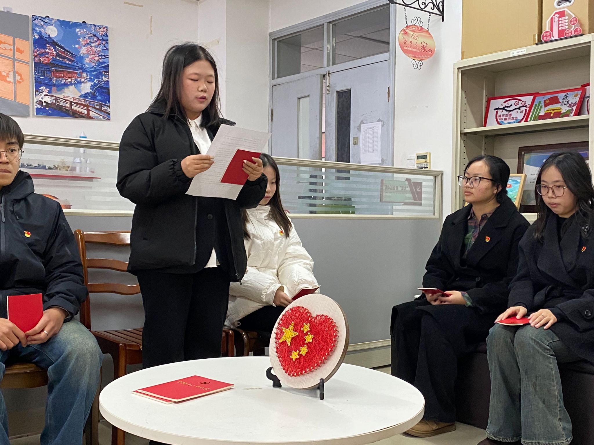 仪式在雄壮的国歌声中开始。王海云副书记宣读预备党员名单后,学生支部书记为新党员逐一配发党章、佩戴党徽。新发展党员代表谭锦涵作表态发言。她满怀激动地表达了成为一名预备党员的光荣与责任,并表示将以誓词为镜,在未来做到:坚定理想信念,不断提升政治素养;践行初心使命,立足学生干部岗位担当作为;严守纪律规矩,永葆共产党员的政治本色。她承诺将把宣誓作为新起点,以实际行动践行誓言,为党和人民的事业贡献青春力量。