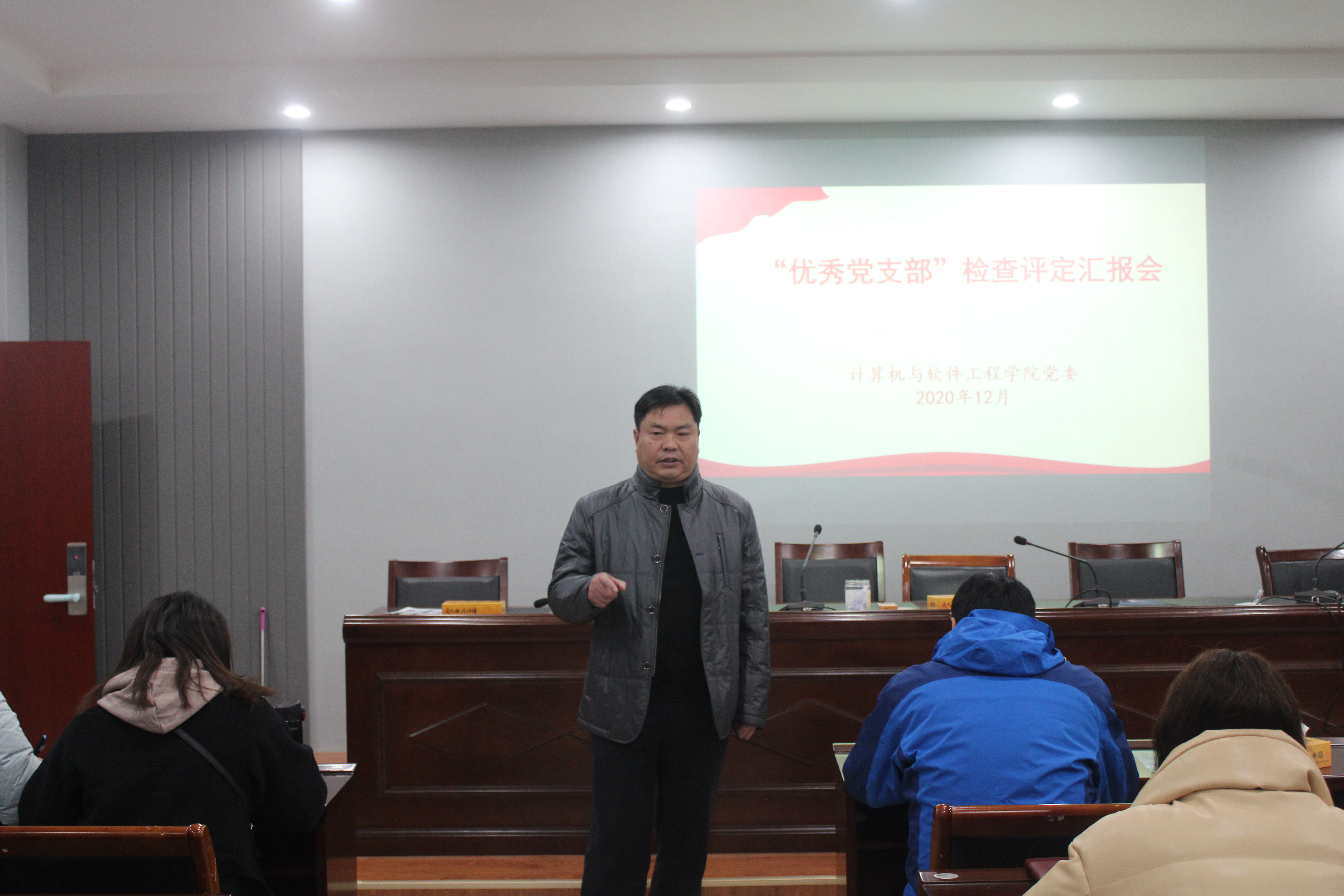 12月2日,计算机与软件工程学院党委在学院会议室举行“优质党支部”检查评定汇报会。四个教工党支部、五个学生党支部书记参加汇报会,教工党支部党员代表参加评审,学院党委书记汪伟、副书记孙凯军参加汇报会。