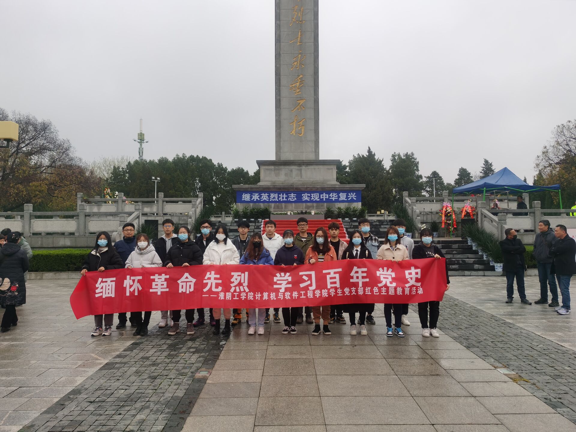 松柏苍翠映陵园,丰碑巍巍缅英烈。4月3日,计算机与软件工程学院党委副书记孙凯军、学生党支部部分党员、入党积极分子来到淮安市烈士陵园,举行“缅怀革命先烈 学习百年党史”红色主题教育活动,深切缅怀为中华民族的独立和解放、为新中国的成立和建设事业而英勇献身的革命先烈。