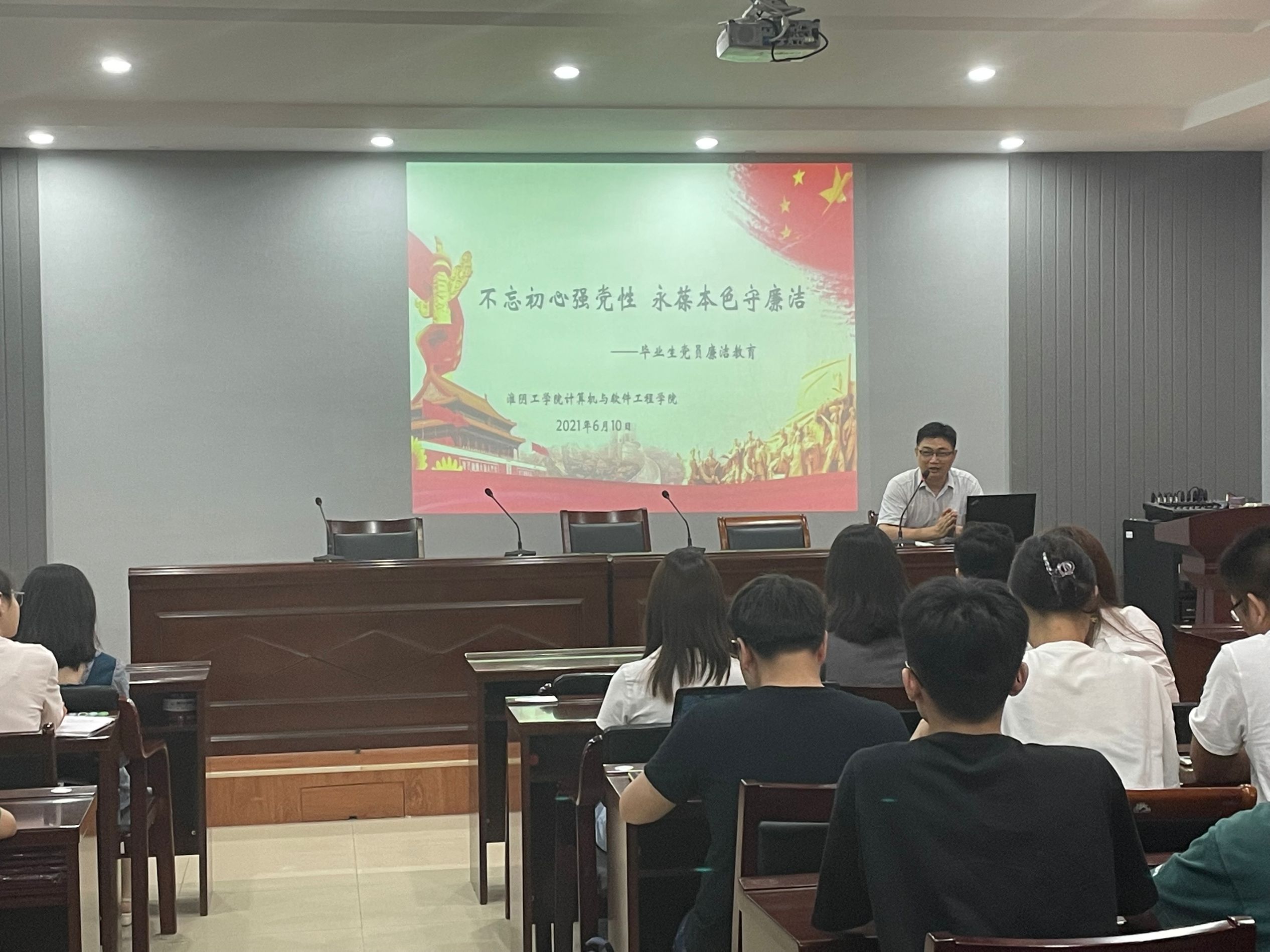 为进一步增强毕业生党员的党性修养和自律意识,引导其以饱满的热情和昂扬的斗志投身社会,6月16日下午,计算机学院按照校纪委部署要求,面向毕业生党员,开展了廉洁教育党课。计算机学院党委副书记孙凯军以“不忘初心强党性,永葆本色守廉洁”为题,为毕业生党员上了大学期间最后一次廉洁教育党课。