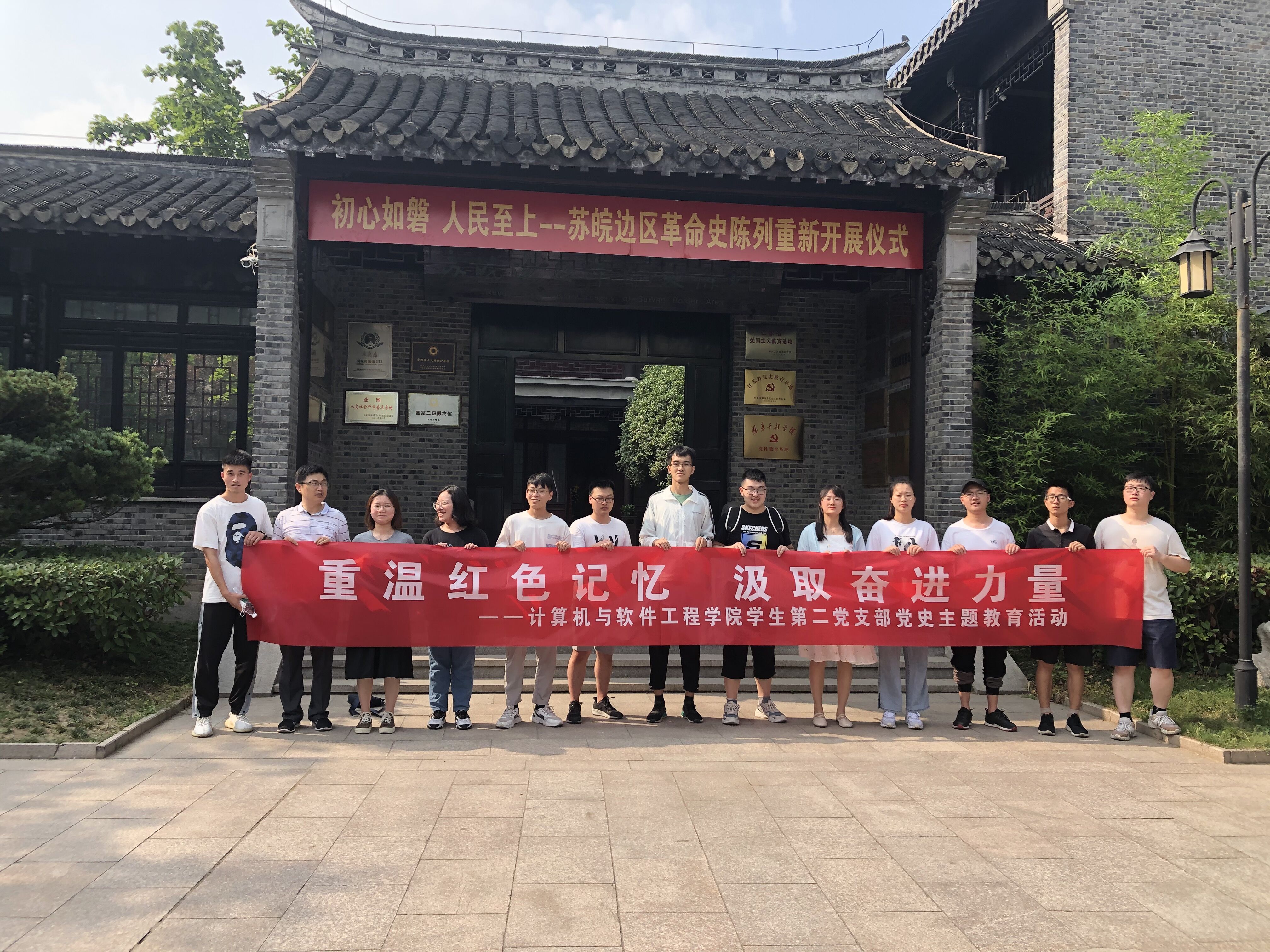 历史因铭记而永恒,精神因传承而发扬。6月30日下午计算机与软件工程学院学生第二党支部20余名师生党员在苏皖边区政府旧址开展了“重温红色记忆,汲取奋进力量”党史主题教育活动,回顾党的光辉历程,接受党史教育和精神洗礼。