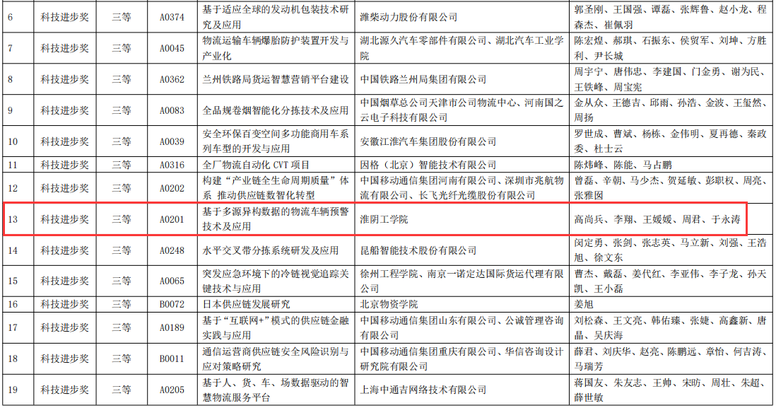 近日,2021年度中国物流与采购联合会科学技术奖揭晓,计算机与软件工程学院高尚兵团队(高尚兵、李翔、王媛媛、周君、于永涛)的“基于多源异构数据的物流车辆预警技术及应用”获得三等奖。中国物流与采购联合会科学技术奖是经国家科技部批准的中国物流领域最高级别的科技奖励,具有推荐国家奖资格,成为我国物流与采购及生产资料流通领域内的标志性奖项。