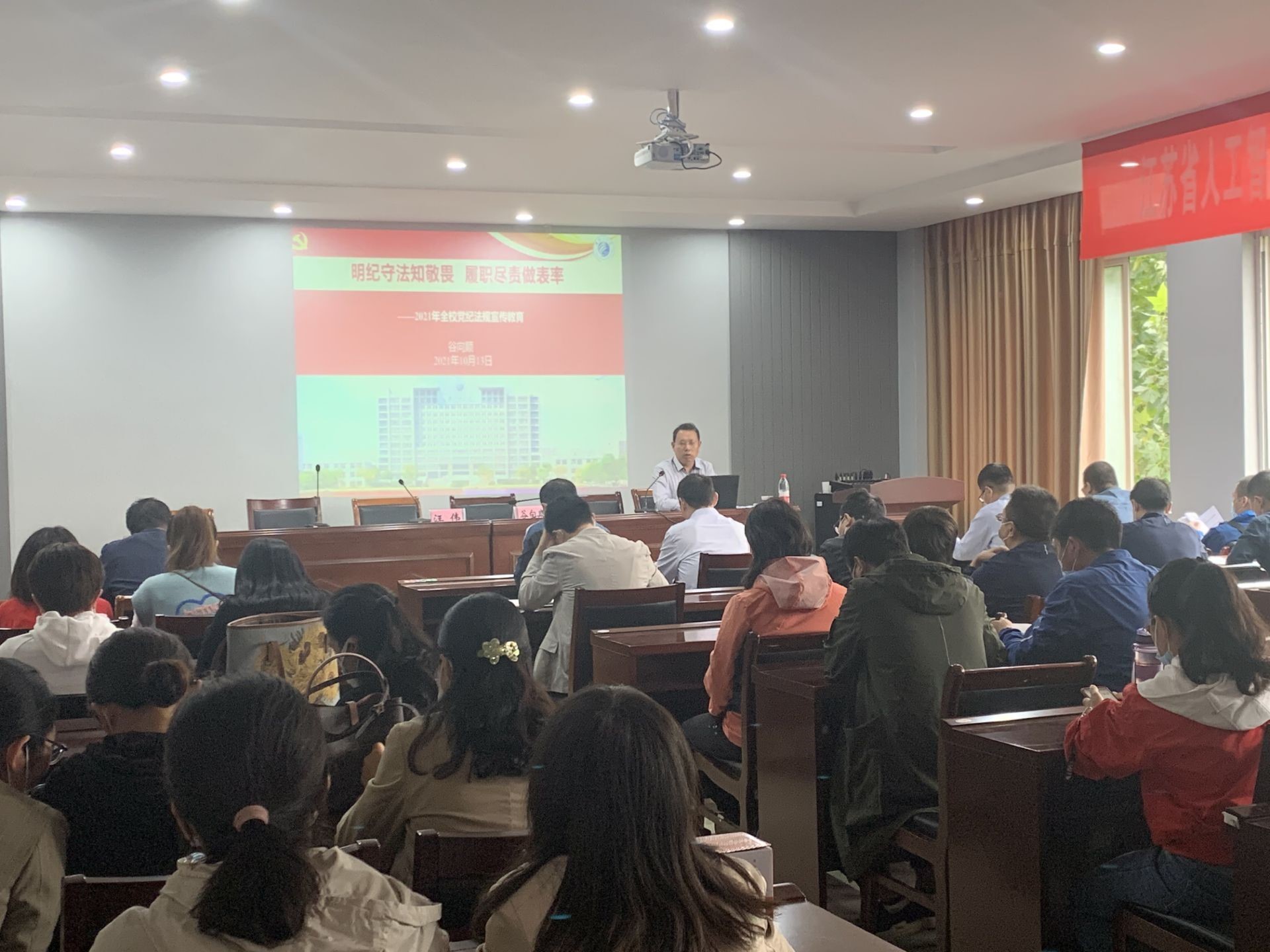 宣讲会上,谷向顺同志专题结合典型案例,从“为什么要开展党纪法规宣讲活动”、“相关党纪法规的规定及典型案例”和“怎样做一名新时代遵纪守法的党员干部和模范教师”三个方面深刻分析了明纪守法、履职尽忠的重要性,既有理论解读,也有鲜活案例,使广大教职工深刻认识到全面从严治党的紧迫性和必要性,牢固树立风险意识。