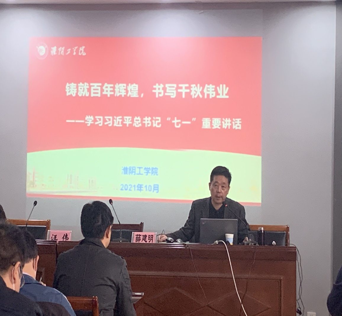 10月20日,校党史学习教育宣讲团成员薛建明教授来到计算机与软件工程学院作题为《铸就百年辉煌,书写千秋伟业》的专题宣讲。全体教职工参加会议,学院党委书记汪伟主持宣讲会。
