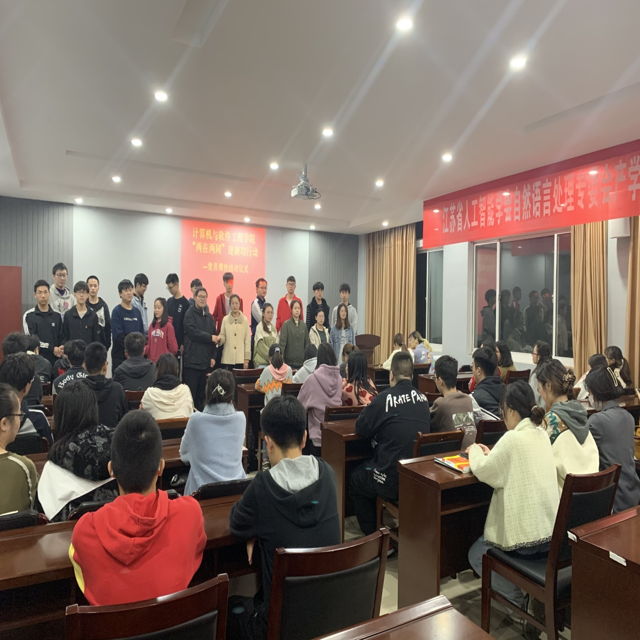 近日,计算机与软件工程学院学生党支部的党员、预备党员、入党积极分子组成帮扶小组,在2019、2020级学生中开展党员结对帮扶活动。11月1日晚,结对帮扶团队的成员们与受到学业预警的同学举行了结对仪式。全院学生党员参加了活动,学院党务秘书潘丽老师主持此次活动。