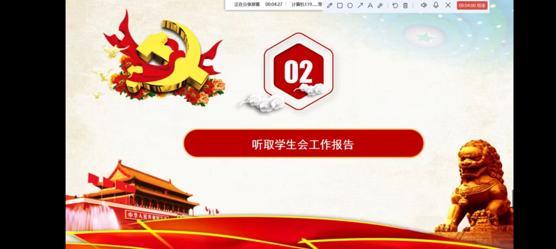 会议伊始,主持人王鹏程宣布开始,然后奏唱国歌。随后,学生会每位成员进行简单的自我介绍。上一届主席团成员秦昊舒学姐宣布委员会名单。接着,主持人宣读大会倡议书。在学生会成员培训会中,胡婷婷老师点明学生会干部应该具有管理能力、观察能力、语言表达能力,树立正确的价值观,从而提高自身的能力。最后,院团委书记胡婷婷老师总结讲话:希望大家牢记初心使命,学生会不仅是一个组织,更是一份热爱,一份情怀,一份责任的传承,表达了对新一届学生会的真切祝愿。