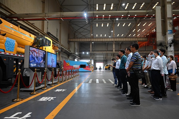 在徐州工程集团重型机械有限公司,全体党员沿着习近平总书记的足迹,走进了整洁的厂区,参观了高度自动化、数字化的装配车间和壮观整齐的智能生产线。全体党员认真倾听讲解人员介绍习近平总书记考察时的情形,感受习近平总书记考察后的新变化。习近平总书记考察时强调“创新是企业核心竞争力的源泉,很多核心技术是求不到、买不来的”。徐工集团将习近平总书记殷殷嘱托转化为改革的强大动力,靠自力更生、自主创新,始终保持中国工程机械行业排头兵地位,目前位居世界工程机械行业第3位,在推动社会经济高质量发展上走在前列。