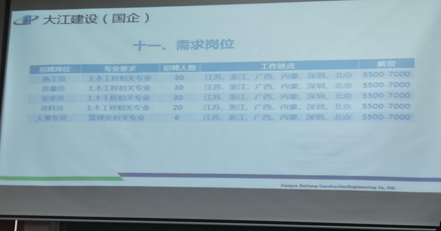 为切实做好2021届毕业生就业工作,加强学院与用人单位的交流沟通,建工学院开展“相约星期三”专场招聘会,2020年10月25日第三期在尚学楼举行。本期邀请了江苏大江建设工程有限公司、中信国安建工集团有限公司等公司。