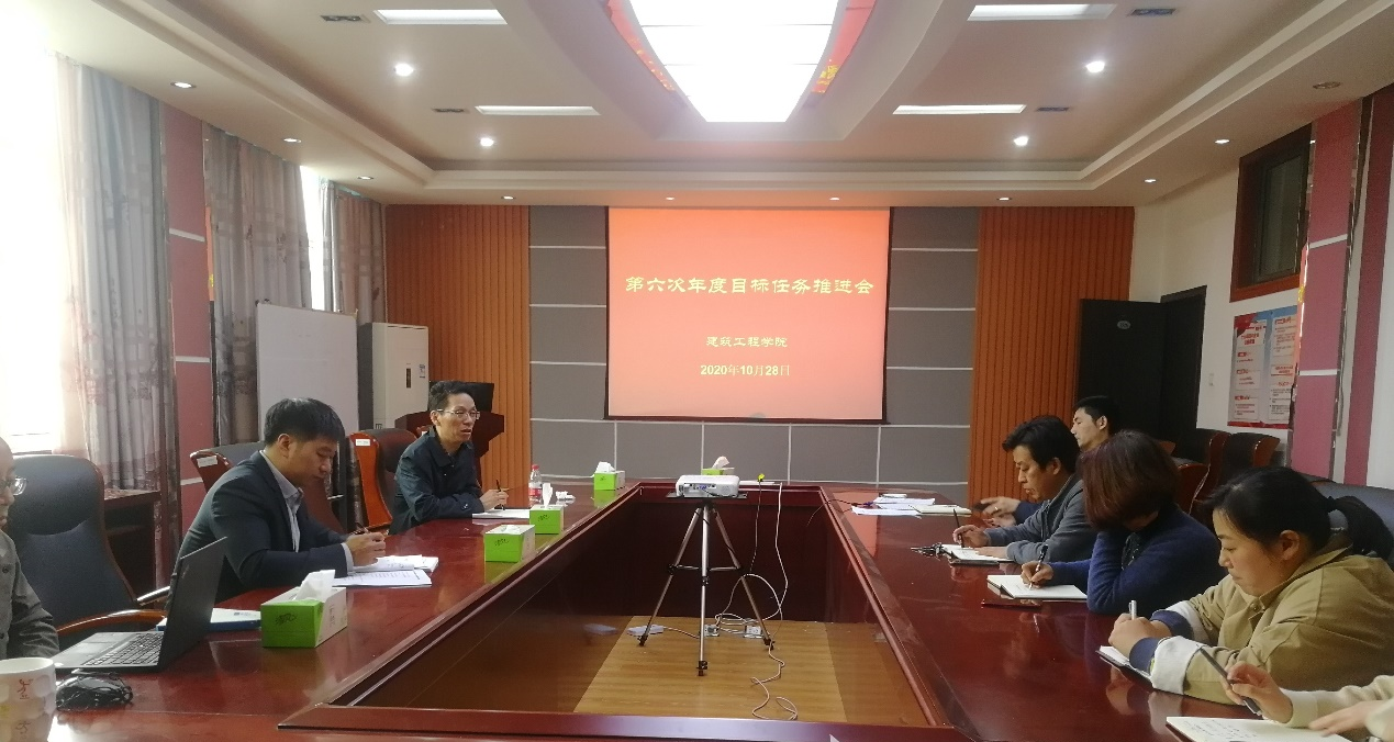 为了进一步加快推进建工学院各系部2020年核心指标任务的完成,2020年10月28日下午,建工学院召开了2020年度目标管理第六次推进会。建工学院党委书记韩飞、院长董云、副院长陈亚东、副院长周潮、科级干部、各系(中心)主任、副主任参加了会议,会议由建工学院院长董云主持。