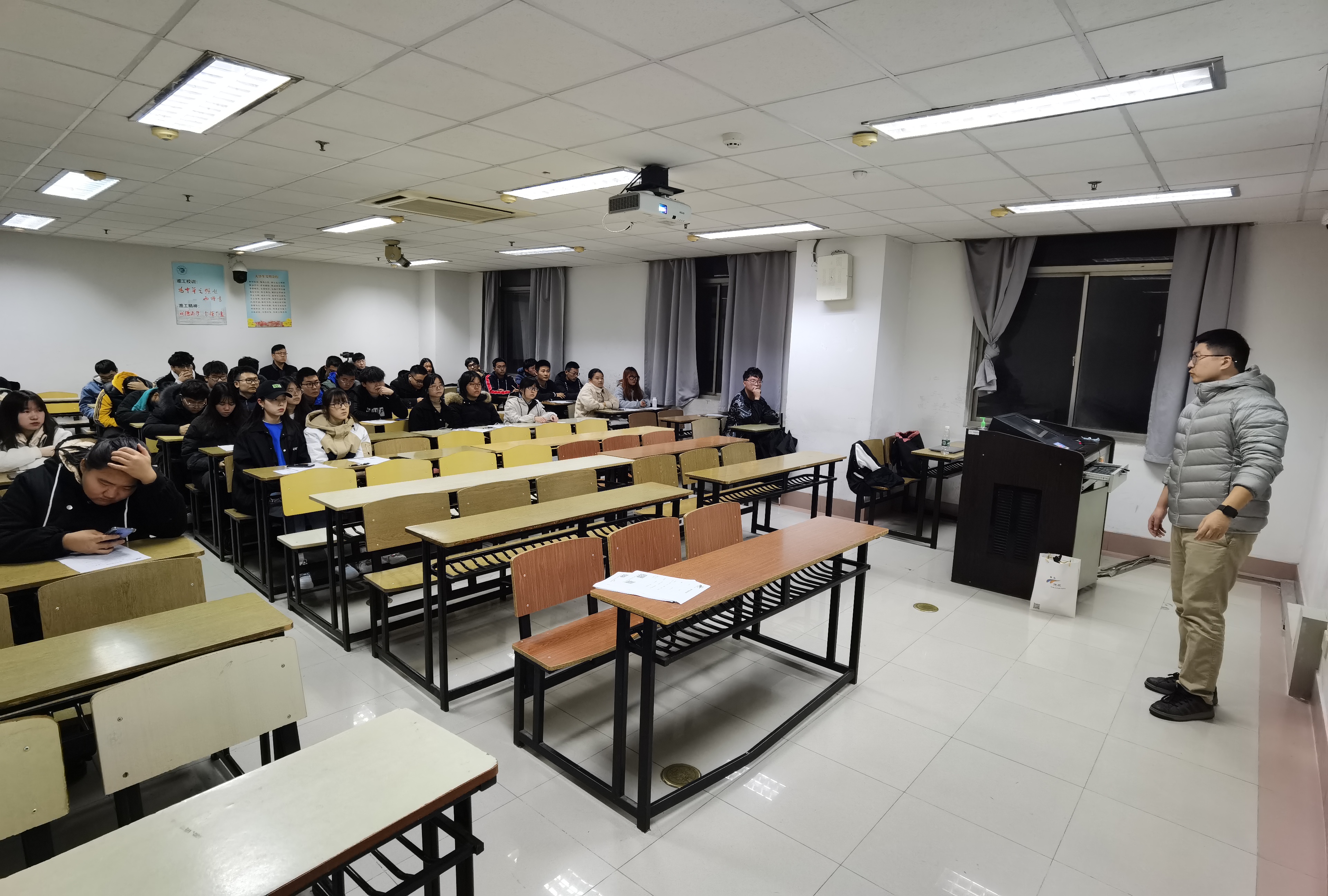 2020年11月25日晚7点,建工学院“微学堂”第67讲:毕业虽远实近,宜未雨绸缪在北京路校区主楼A0306与同学们如期见面。本期主讲嘉宾是东南大学硕士研究生、德航保研创始人、首席升学顾问的王健老师,建筑1192班全体同学参加本期微学堂,旨在帮助同学们认清目前形式,更快树立合理目标。