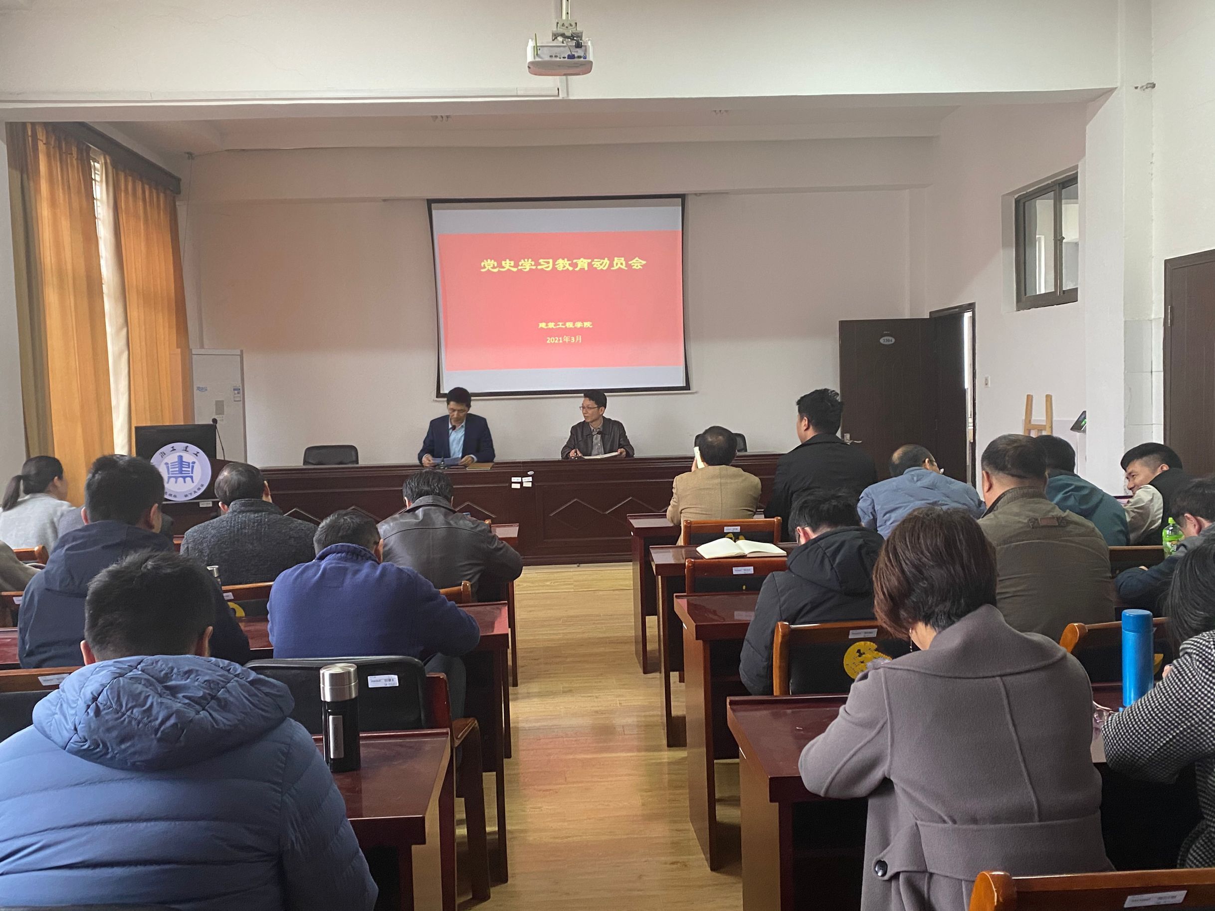 2021年3月31日下午2点,建工学院党委在北京路校区品学楼3304报告厅召开党史学习教育动员大会。会议由陈亚东书记主持,建工学院党委班子成员及全体教师党员参加此次会议。