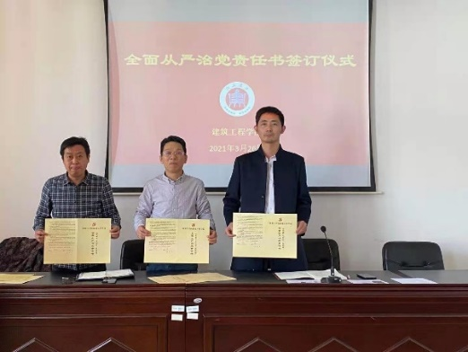 最后,学院班子成员分别与相关负责人签署了全面从严治党、年度目标任务以及安全稳定工作责任状。