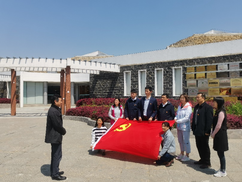 在纪念馆广场,面向党旗,党支部书记陈亚东教授庄严领誓,全体党员肃立,重温入党誓词:“我志愿加入中国共产党,拥护党的纲领,遵守党的章程……”。宣誓铿锵有力,掷地有声,支部党员再次庄严承诺,坚定理想信念,矢志拼搏奋斗。