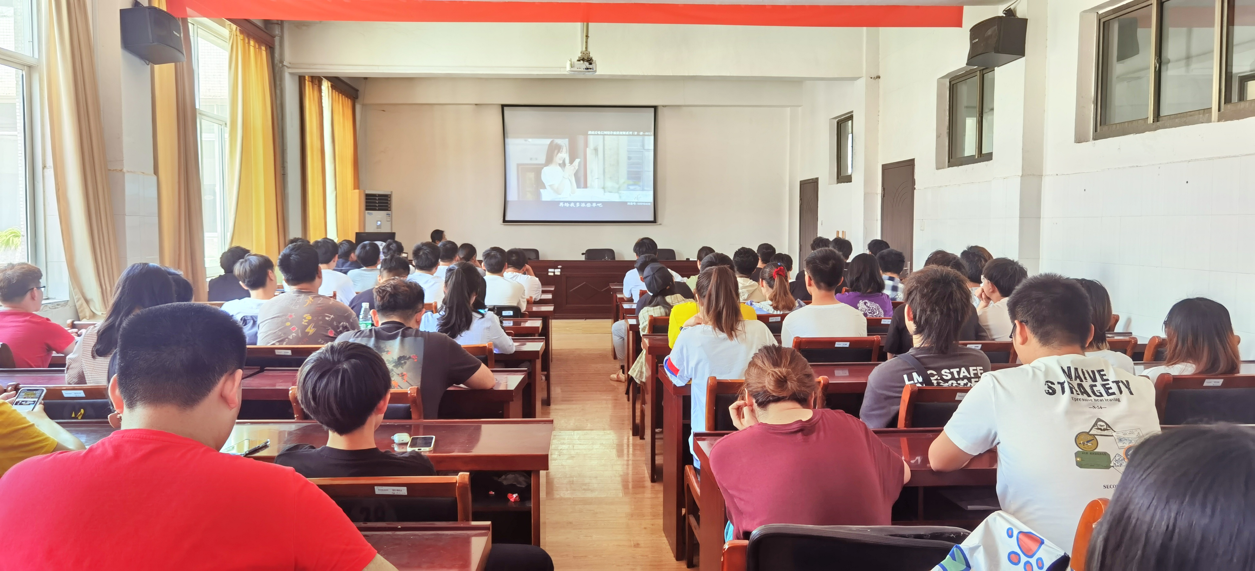 会上,全体同学共同观看防范电信诈骗的宣传视频。