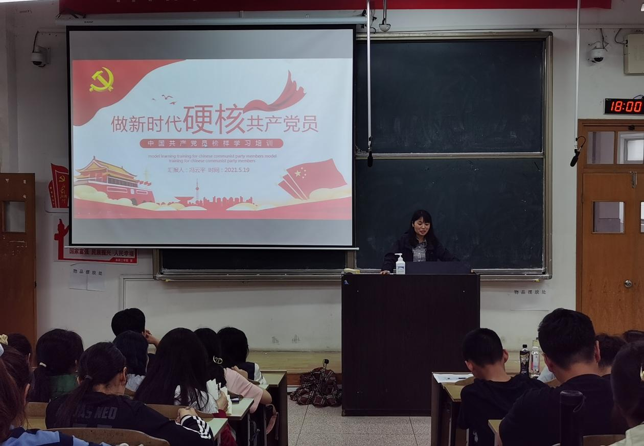 2021年5月19日17点,建工学院党委2021年度第一期入党积极分子培训第五讲在尚学楼AJ301教室如期举行,本次课程主讲人是建工学院党委副书记、副院长冯云平老师,主题为做新时代硬核共产党员,建工学院101名入党积极分子参与了本次学习。