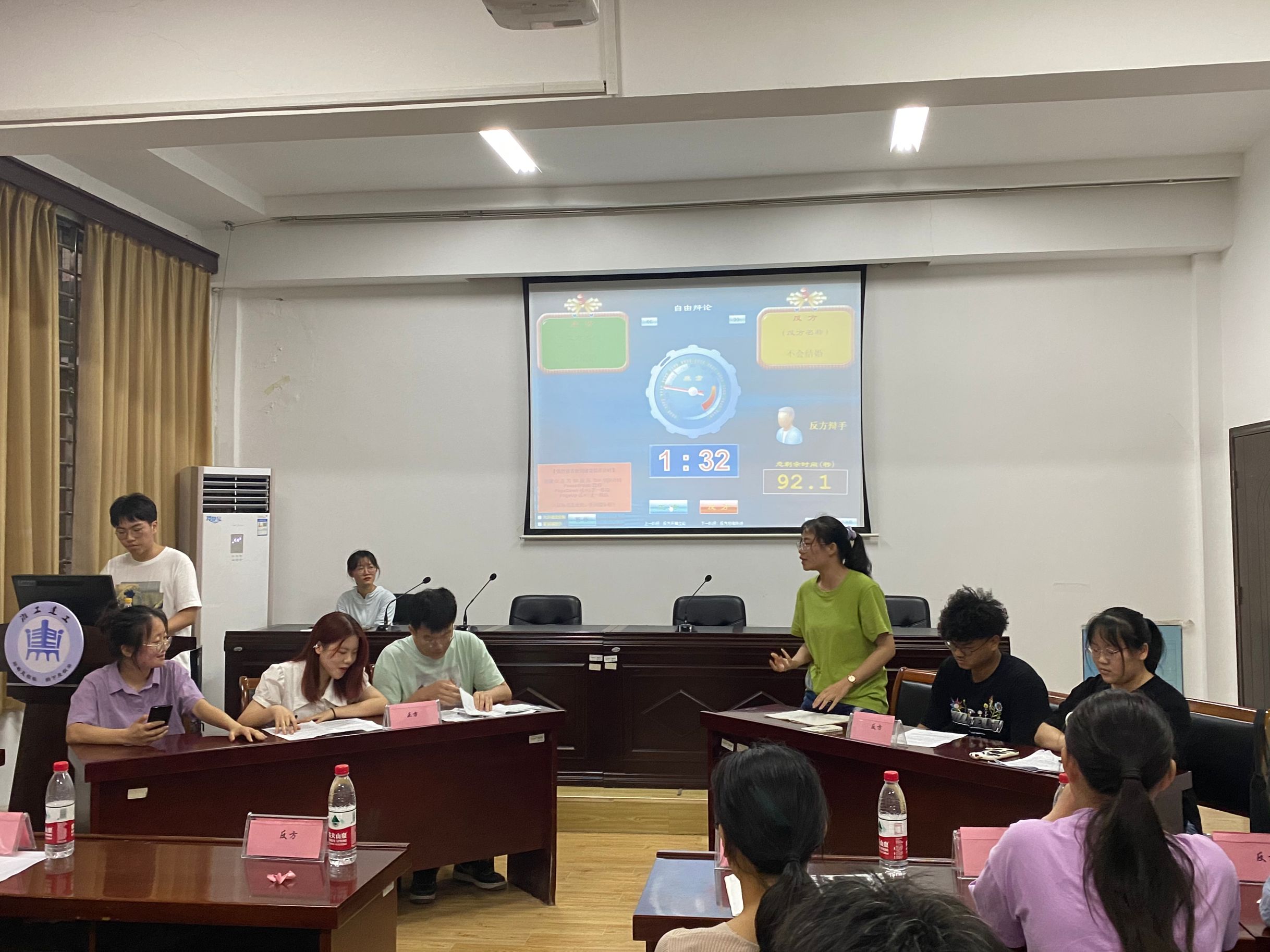 本次辩论赛由来自不同班级的六位同学组成正反两方,就“如果有和梦想型对象闪婚的机会,但是最后一定会离婚,你会接受闪婚吗?”这一辩题展开了激烈的辩论。