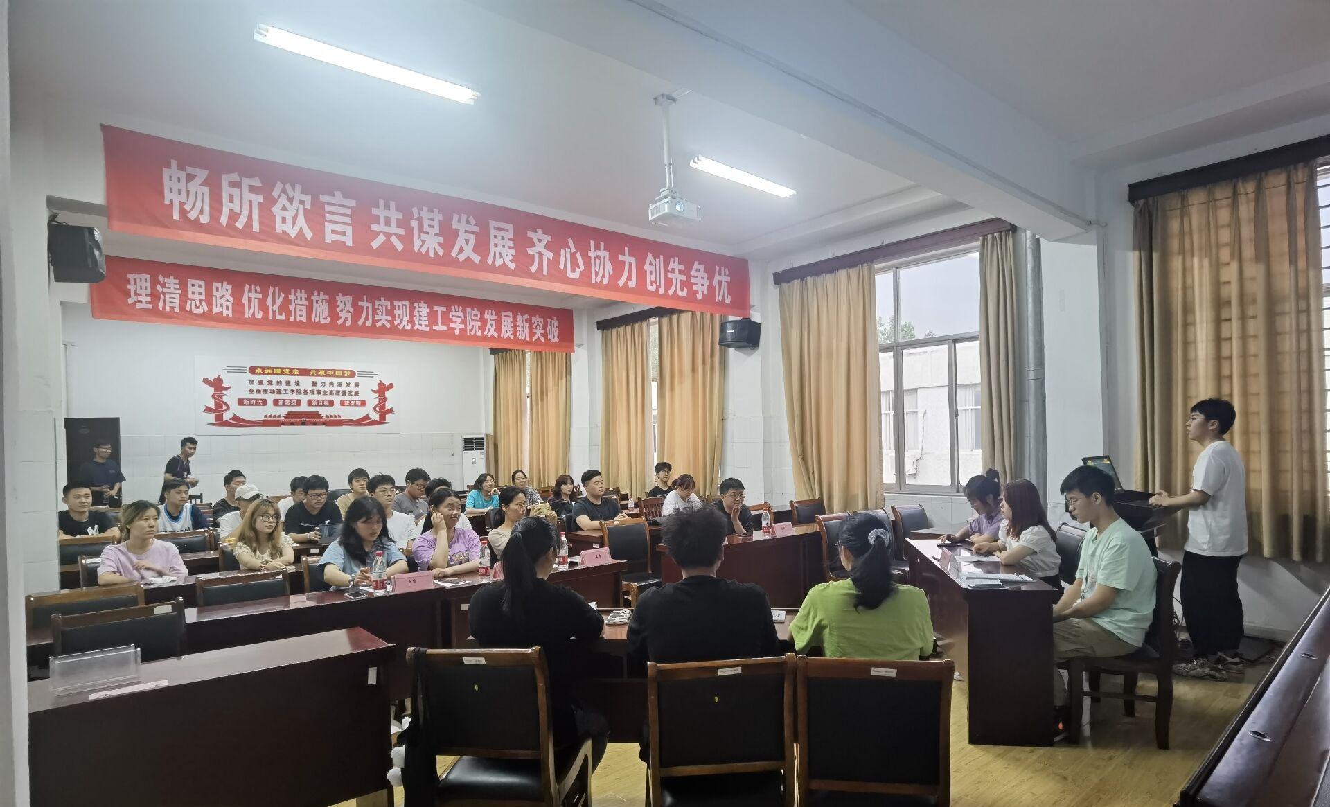 古有卧龙诸葛舌战群儒,今有群英荟萃慷慨陈词。6月11日晚6:00,建工学院辩论队主办的第一届“奇葩辩论赛”于品学楼3304如期举行,建工学院辅导员周彤老师、2019级和2020级部分同学参加了本次辩论赛。