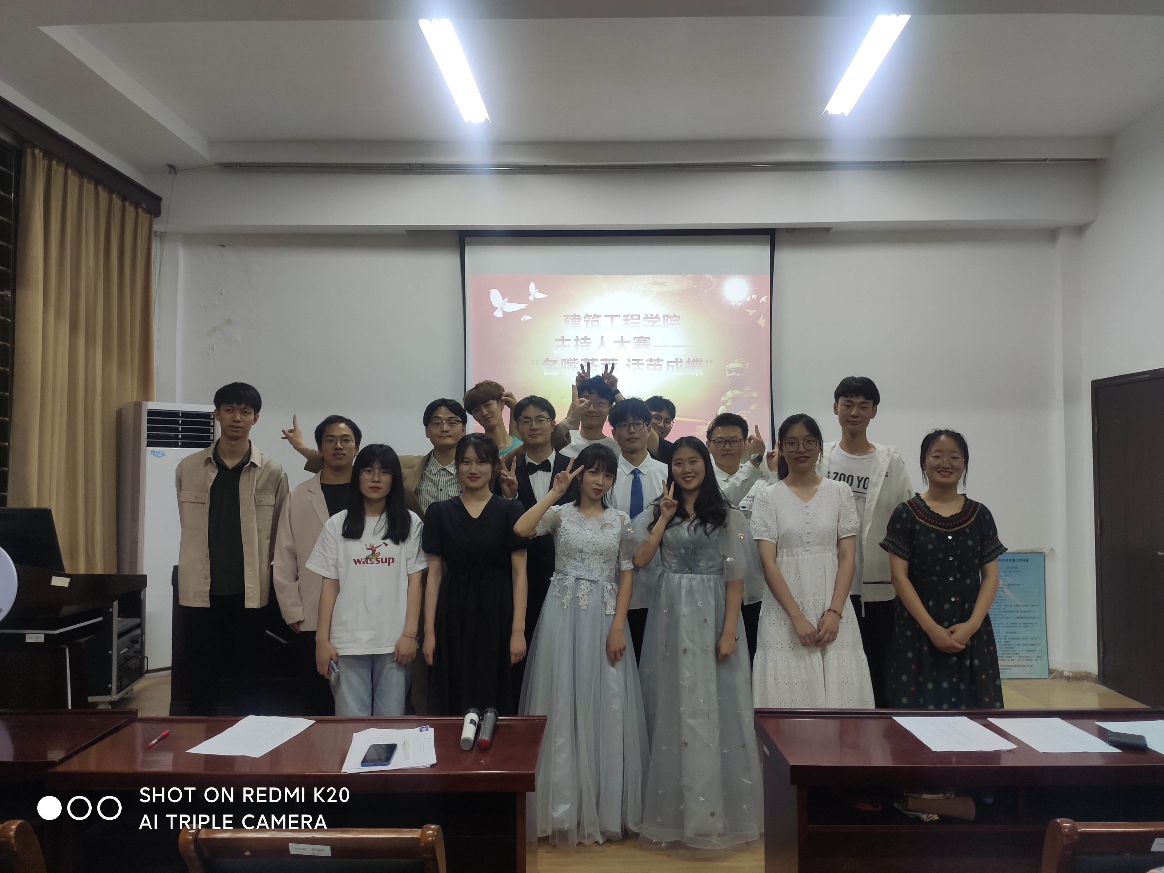 为营造积极健康的校园文化,提高全院学生的综合素质,选拔出一批业务强、台风好、气质佳的主持人,2021年6月10日晚7点,建工学院于品学楼3304举行“名嘴荟萃,话茧成蝶”主持人大赛,学生会成员和选手参加了本次活动,活动由徐海燕同学主持。