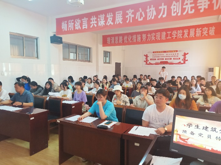 2021年6月10日中午12点30在建工学院报告厅召开预备党员转正大会。出席会议正式党员21人,预备党员49人,待转正的预备党员13人,会议出席人数符合要求。